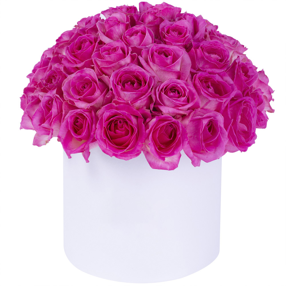 Букет из 51 малиновой розы premium в белой шляпной коробке