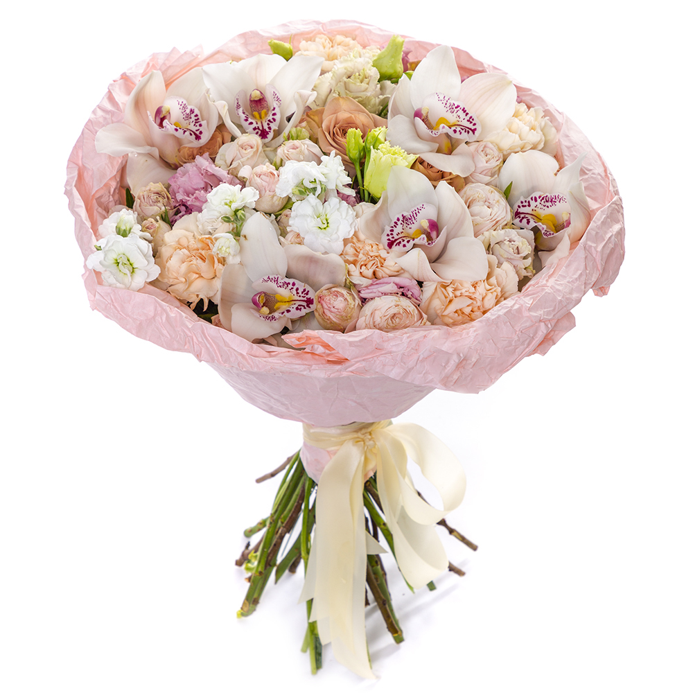 Букет из орхидей, роз и маттиолы