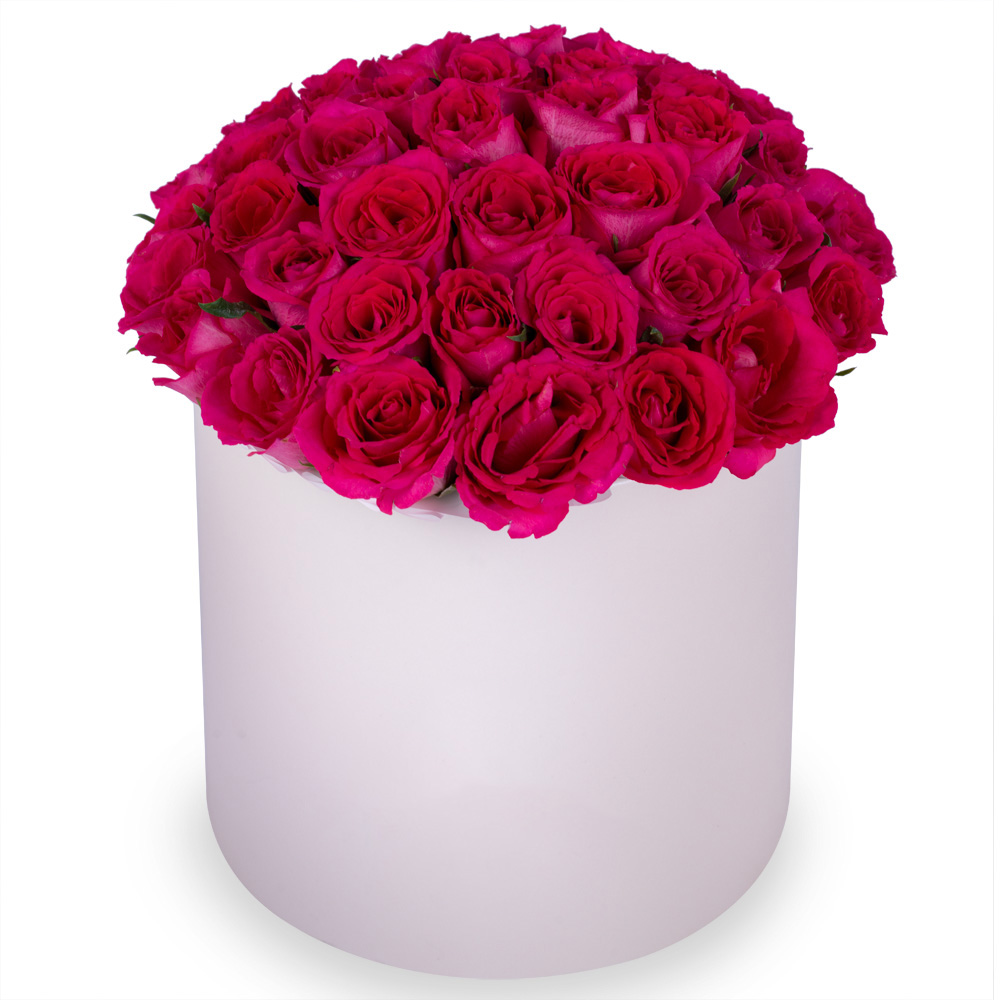 51 малиновая роза в кремовой шляпной коробке