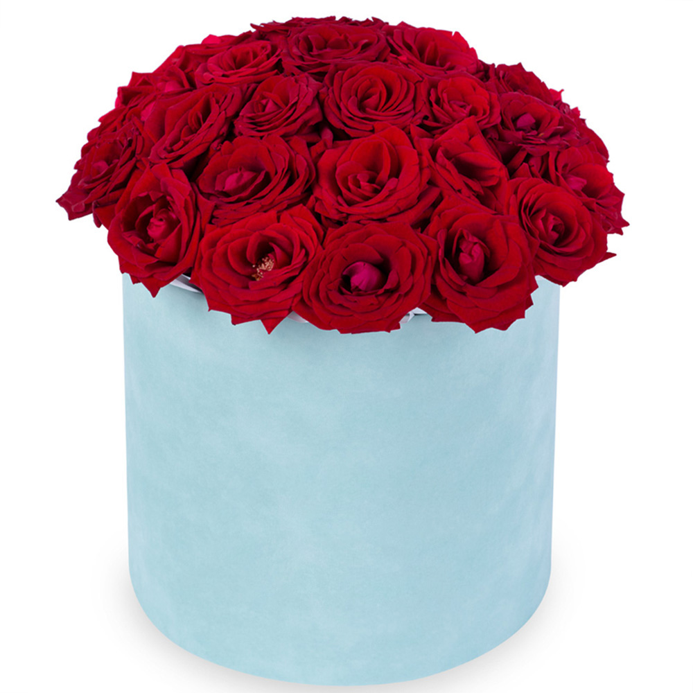 25 роз premium в бархатной шляпной коробке