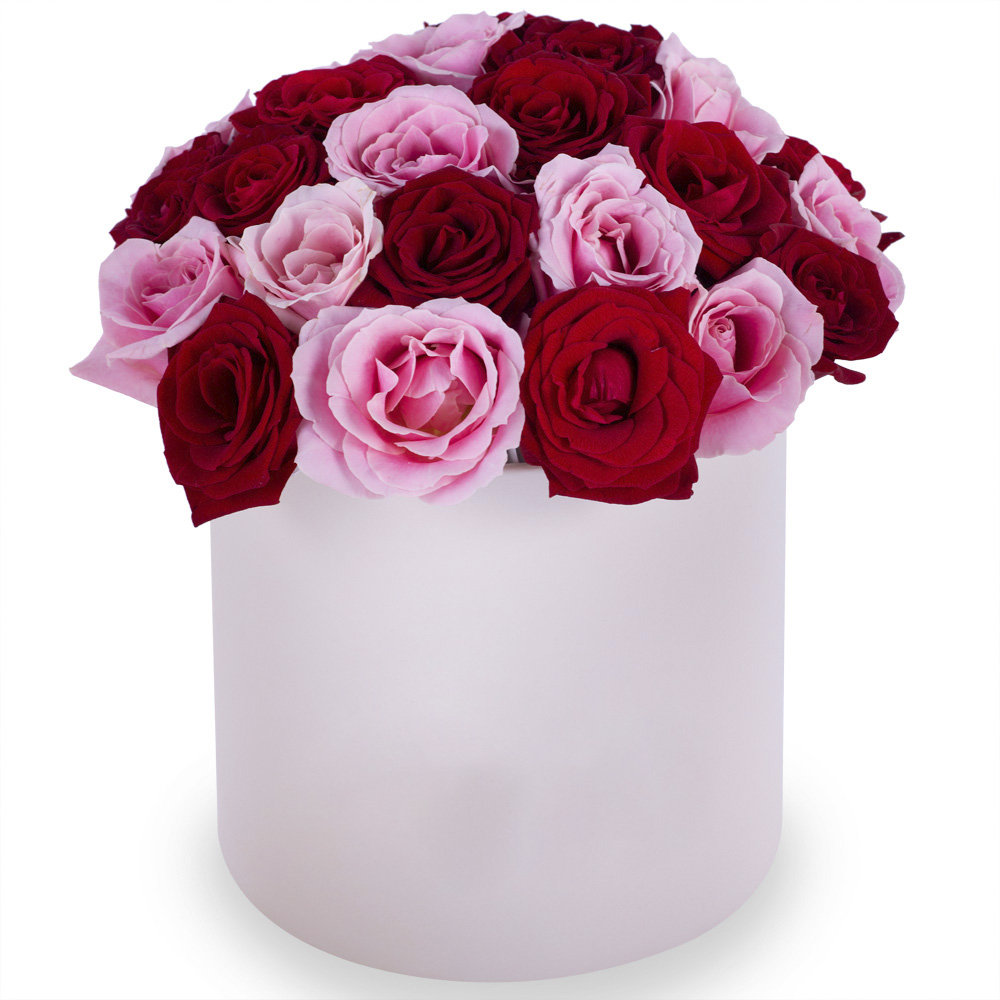 Букет из 35 разноцветных роз premium в кремовой шляпной коробке