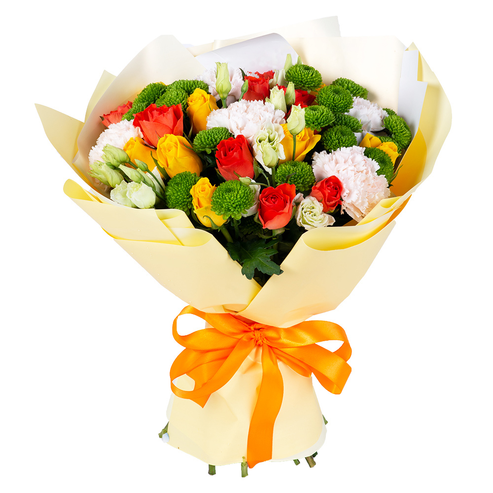 Букет из роз, диантуса и эустом