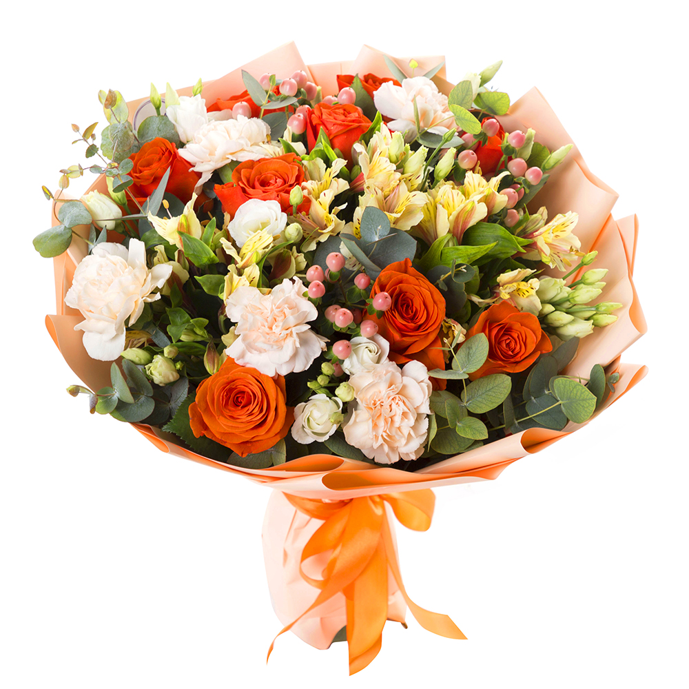 Букет из роз, гвоздик и альстромерий