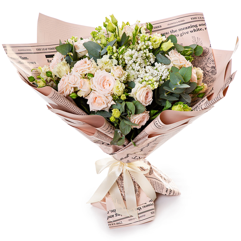 Букет из роз, эустомы и сирени