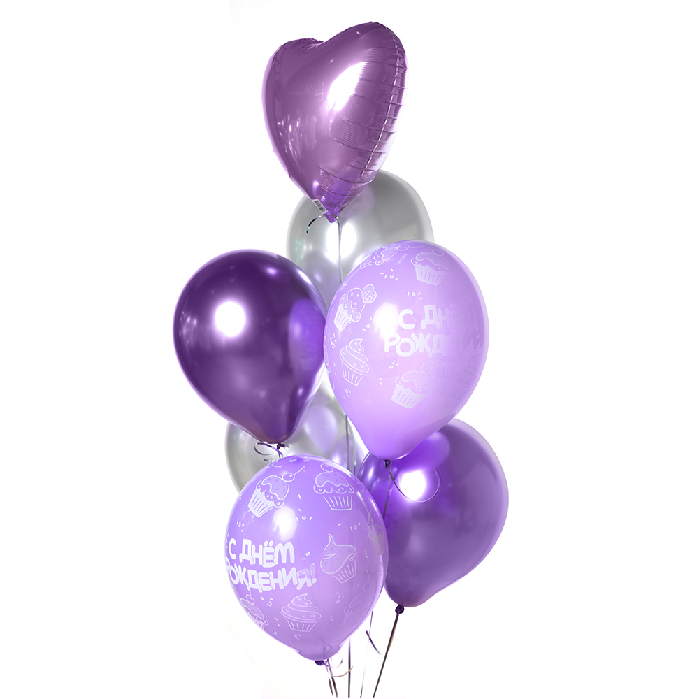 Латексный шар с надписью «С днём рождения» сиреневый, 30 см – 2 шт.