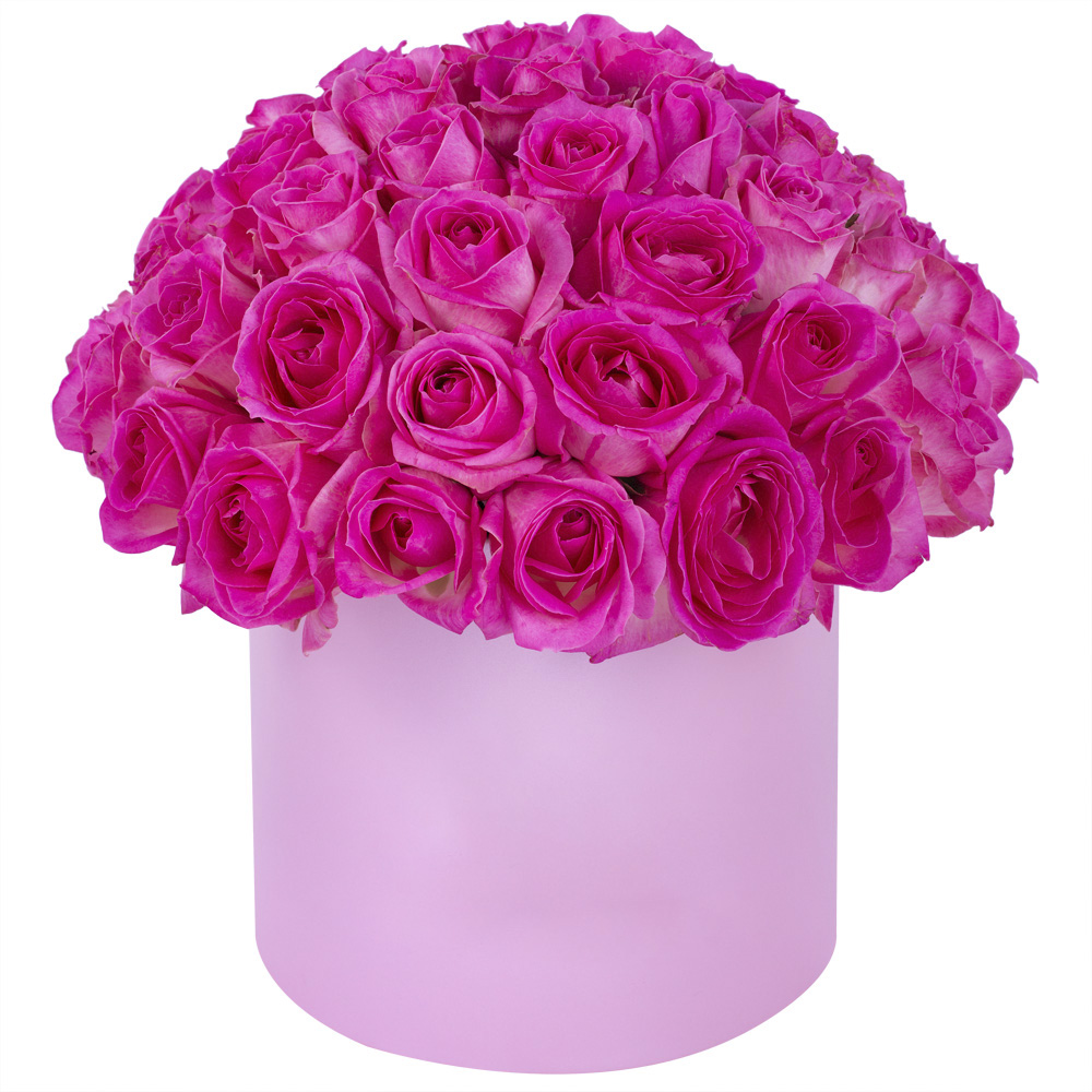 Букет из 51 малиновой розы premium в розовой шляпной коробке