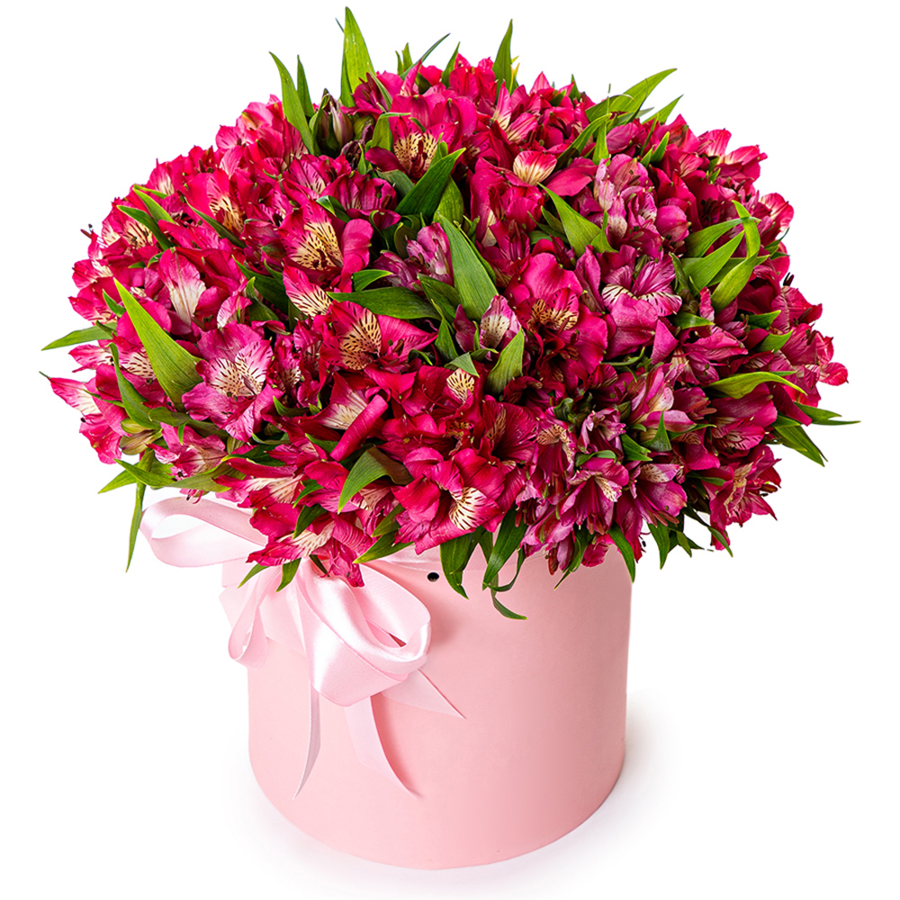 35 альстромерий в шляпной коробке