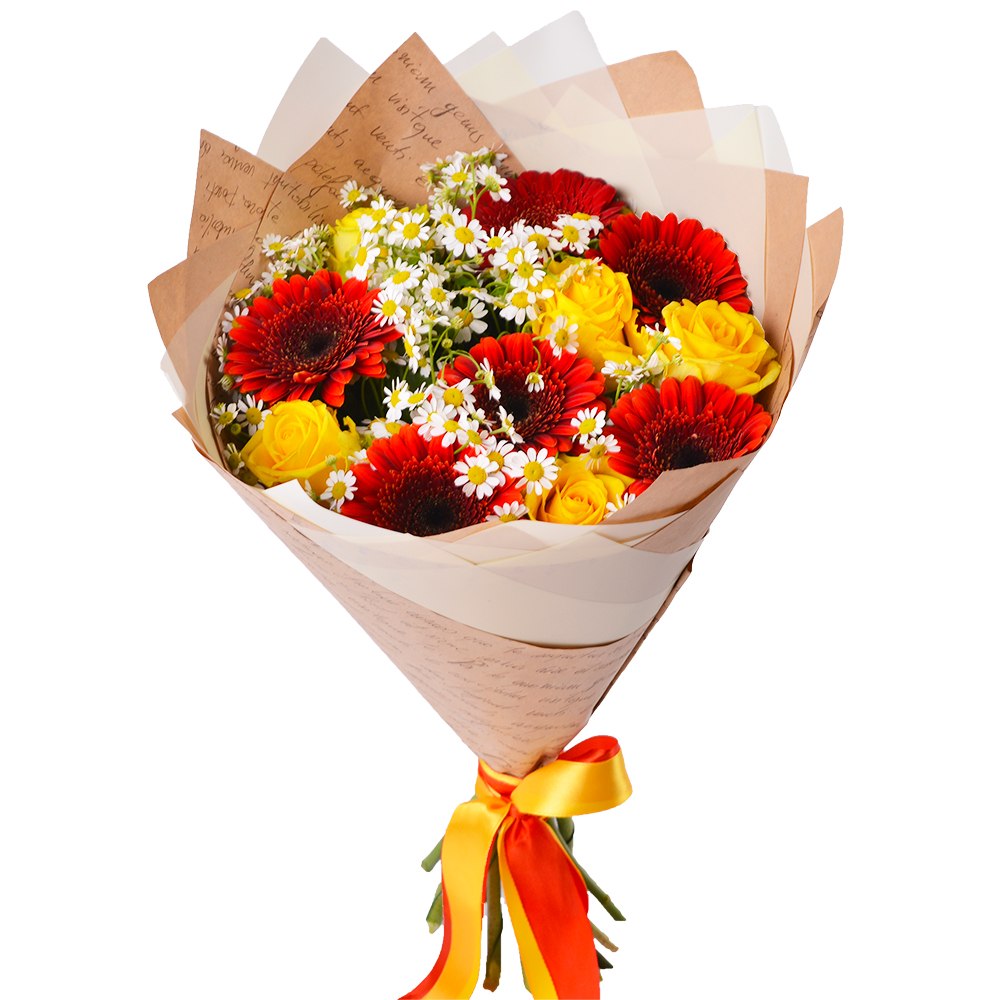 Букет с розой, герберой и танацетумом