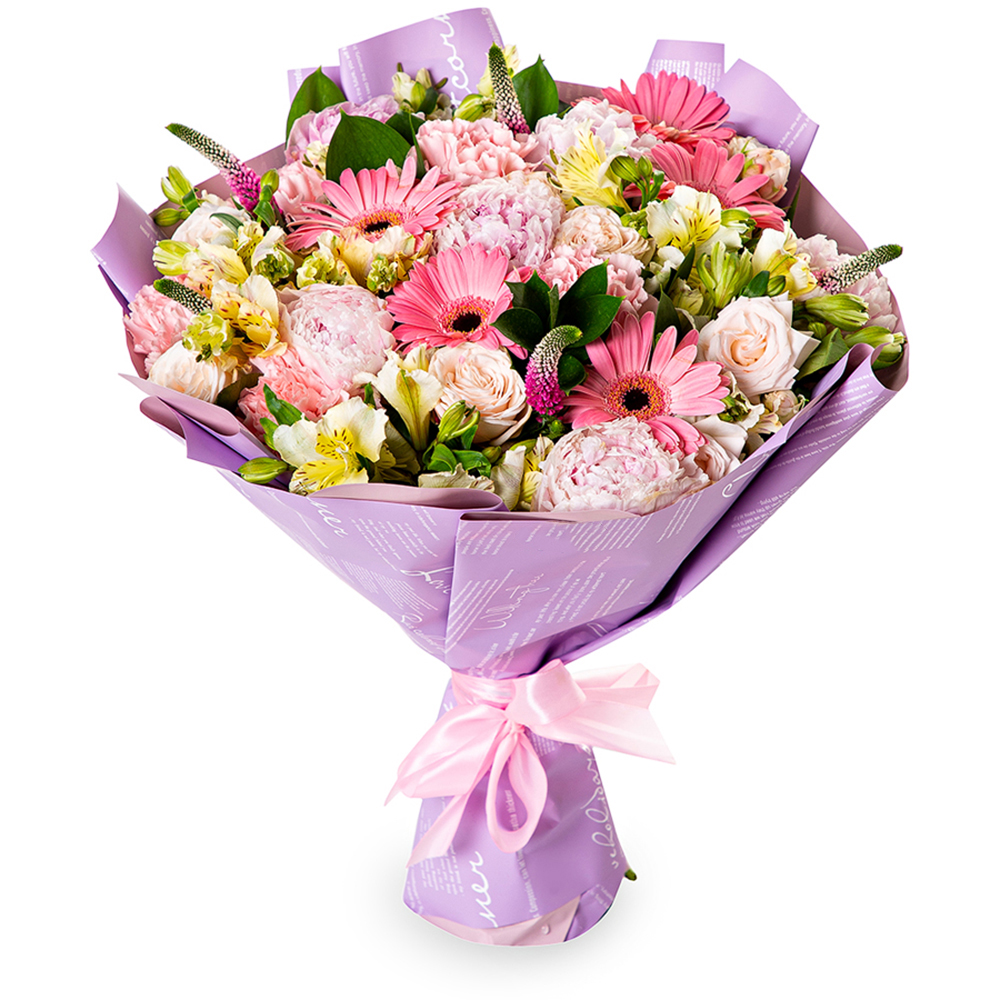 Букет из пионов, гвоздик и гербер