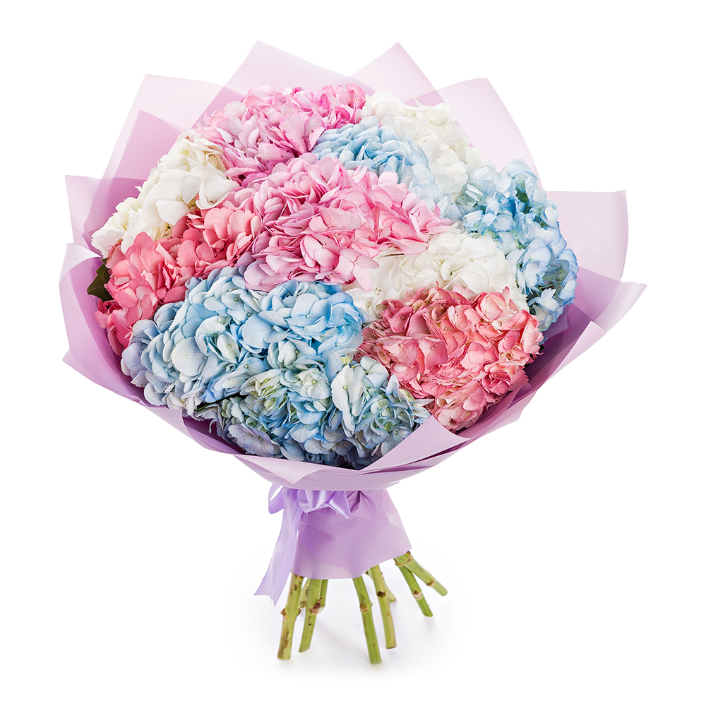 Букет из 11 разноцветных гортензий