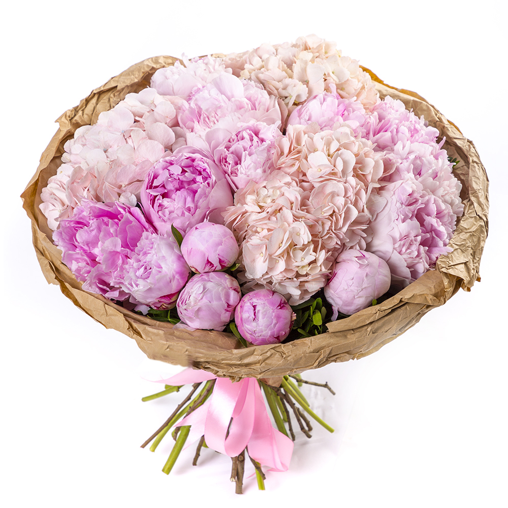 Букет из пионов и гортензий