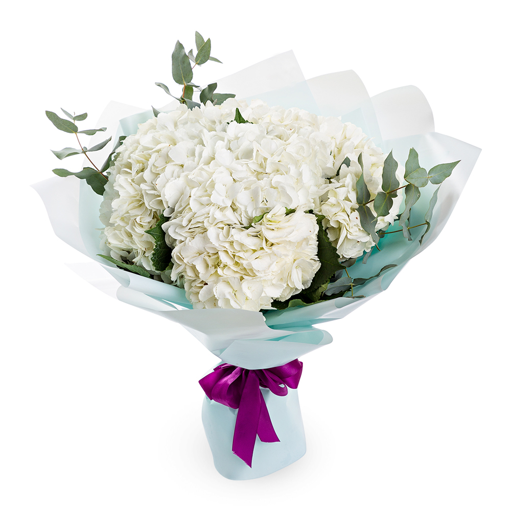 Букет из 5 гортензий и эвкалипта