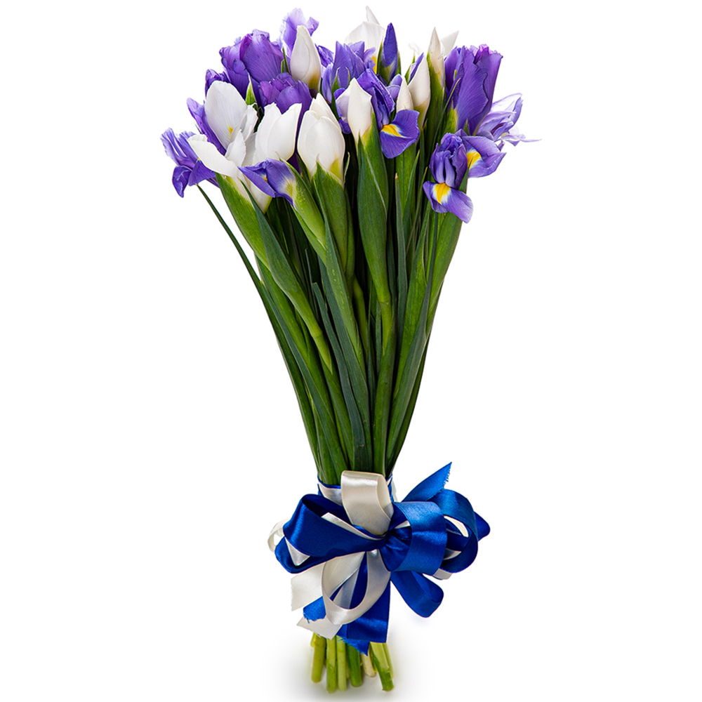 Букет из белого и синего ириса 25 шт