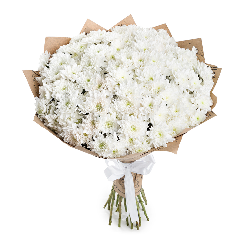 Букет из 25 белых хризантем