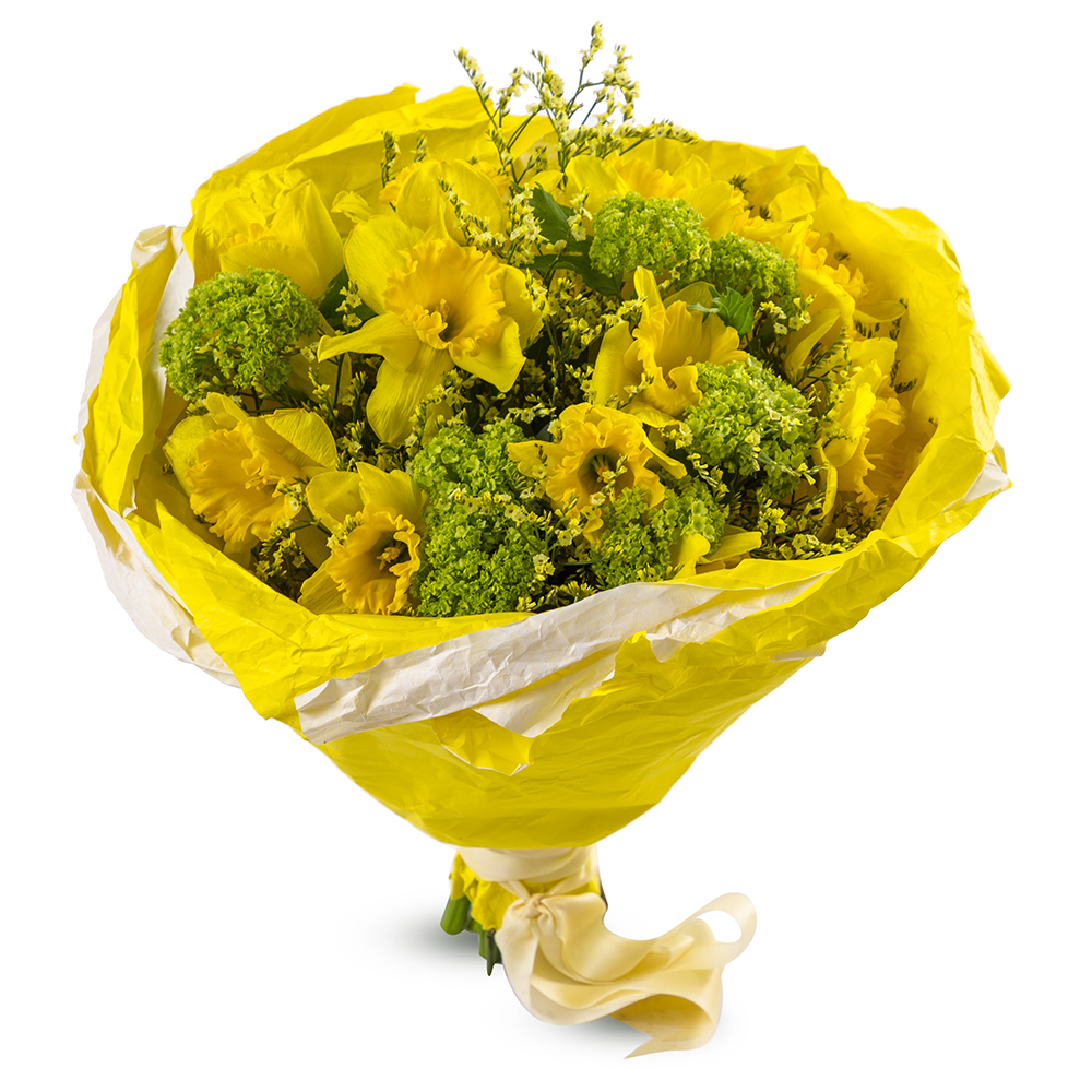 Букет из желтых нарциссов и розеума
