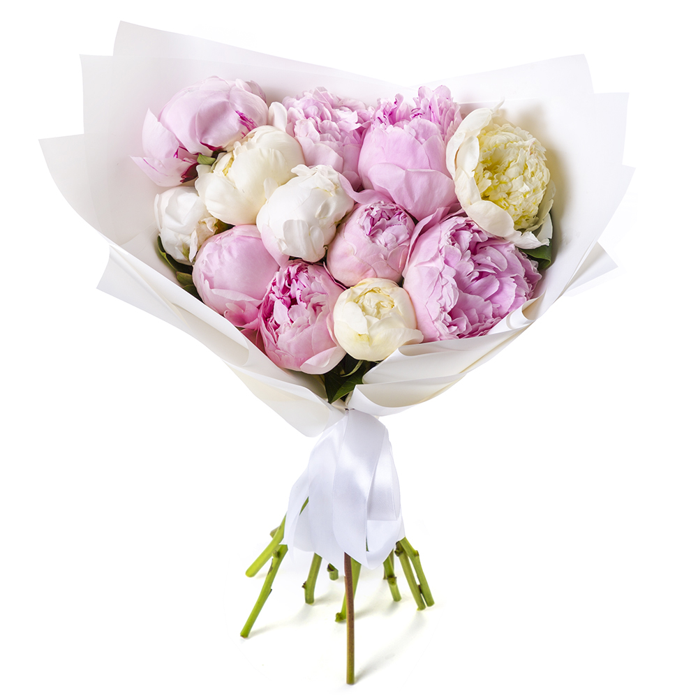 Букет из 13 разноцветных пионов