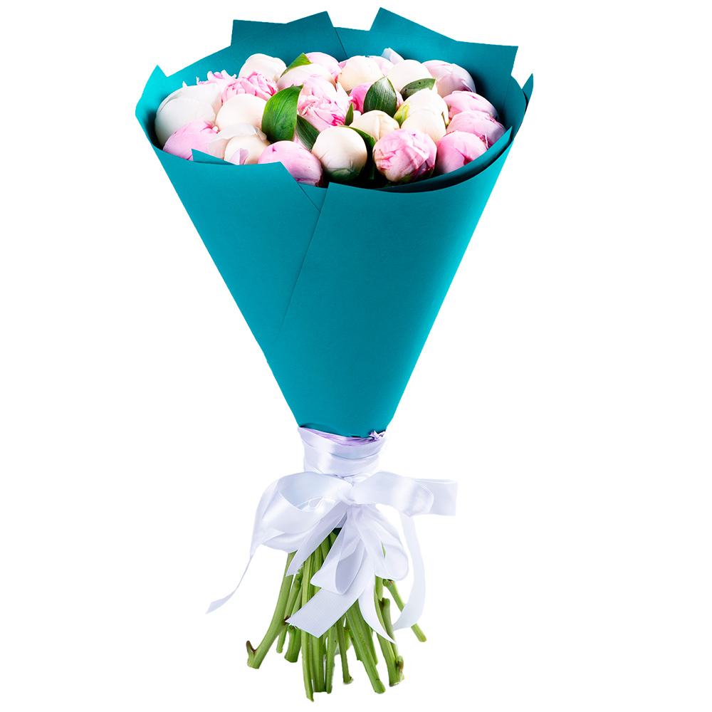 25 разноцветных пионов