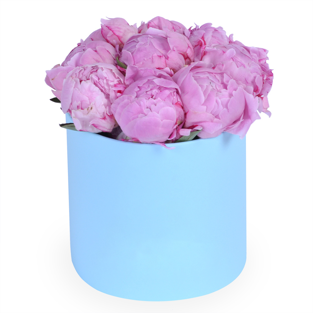 Букет из 9 розовых пионов в шляпной коробке