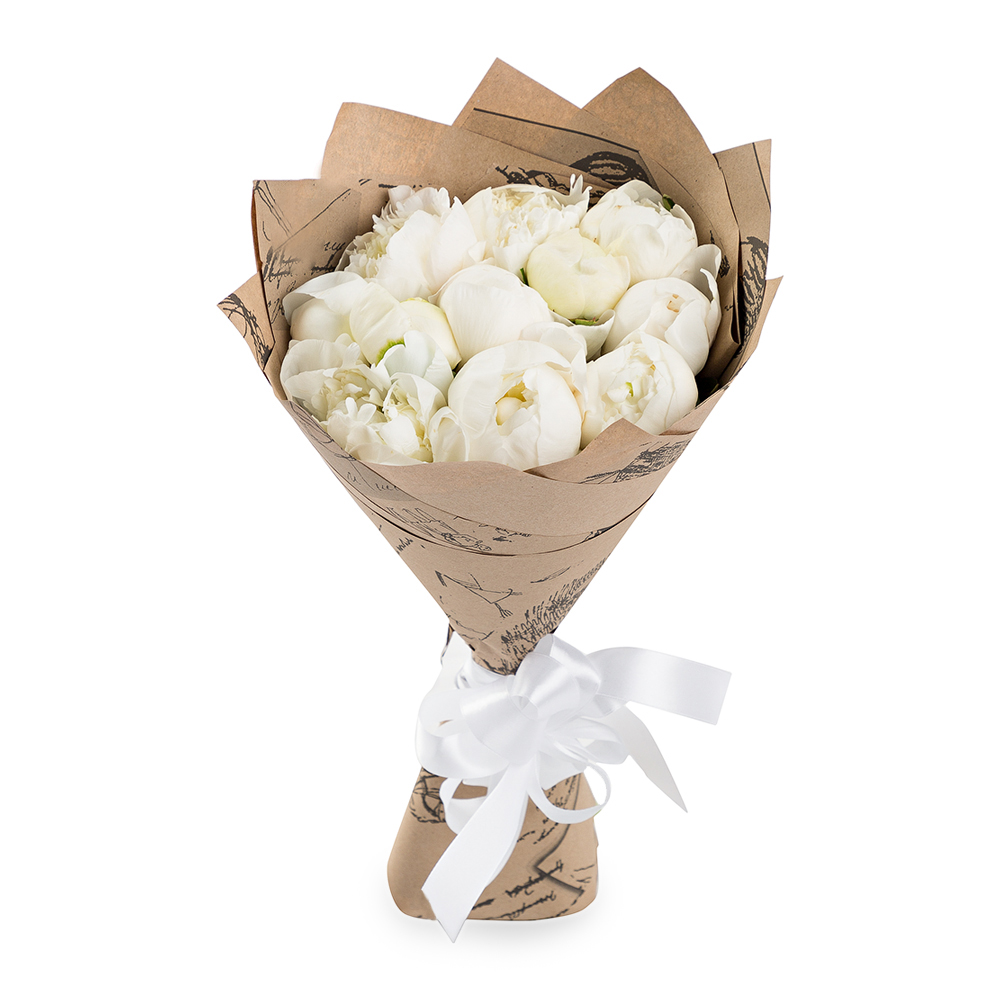 11 белых пионов