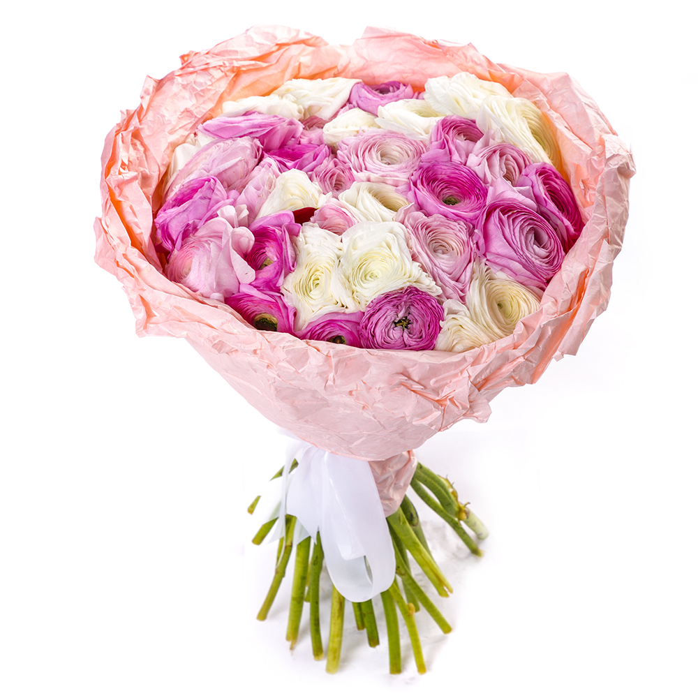 Букет из 35 разноцветных ранункулюсов