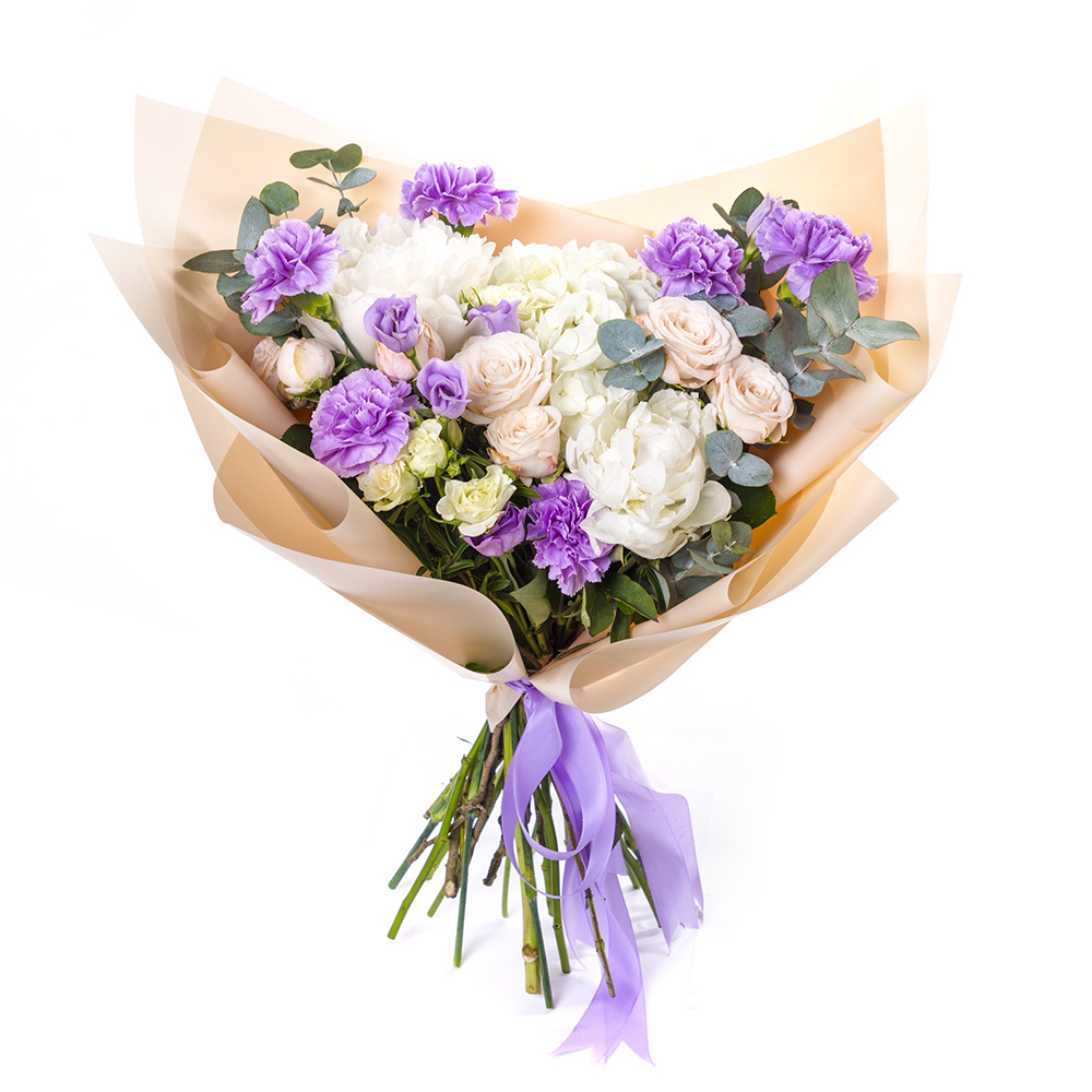 Букет из эустом, роз и пионов