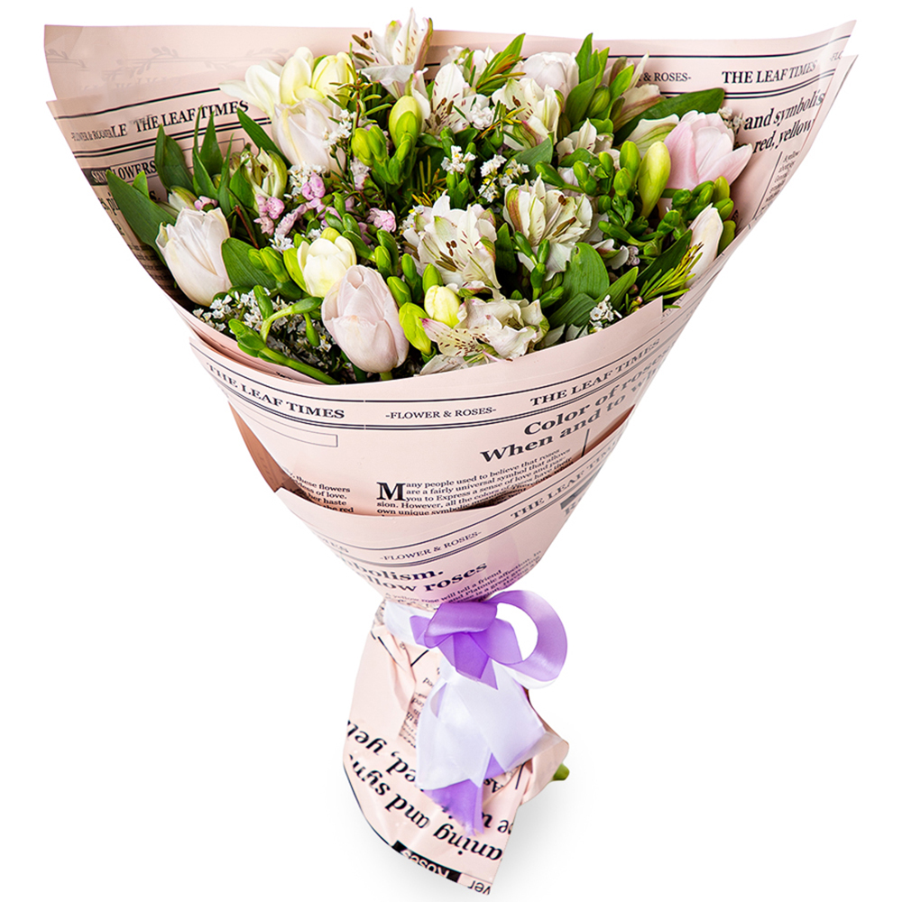 Букет из тюльпанов, фрезии и альстромерии