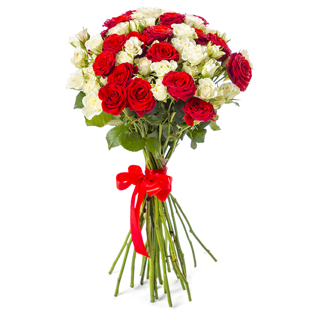 25 красно-белых кустовых роз