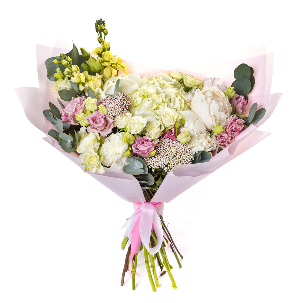 Букет из эустом, пионов и роз