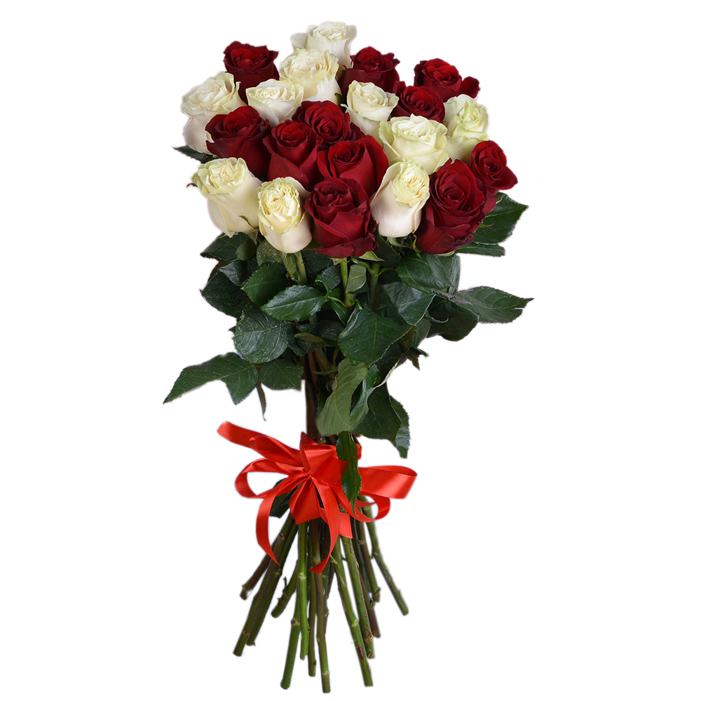 Букет из 21 разноцветной розы Эквадор 70 см