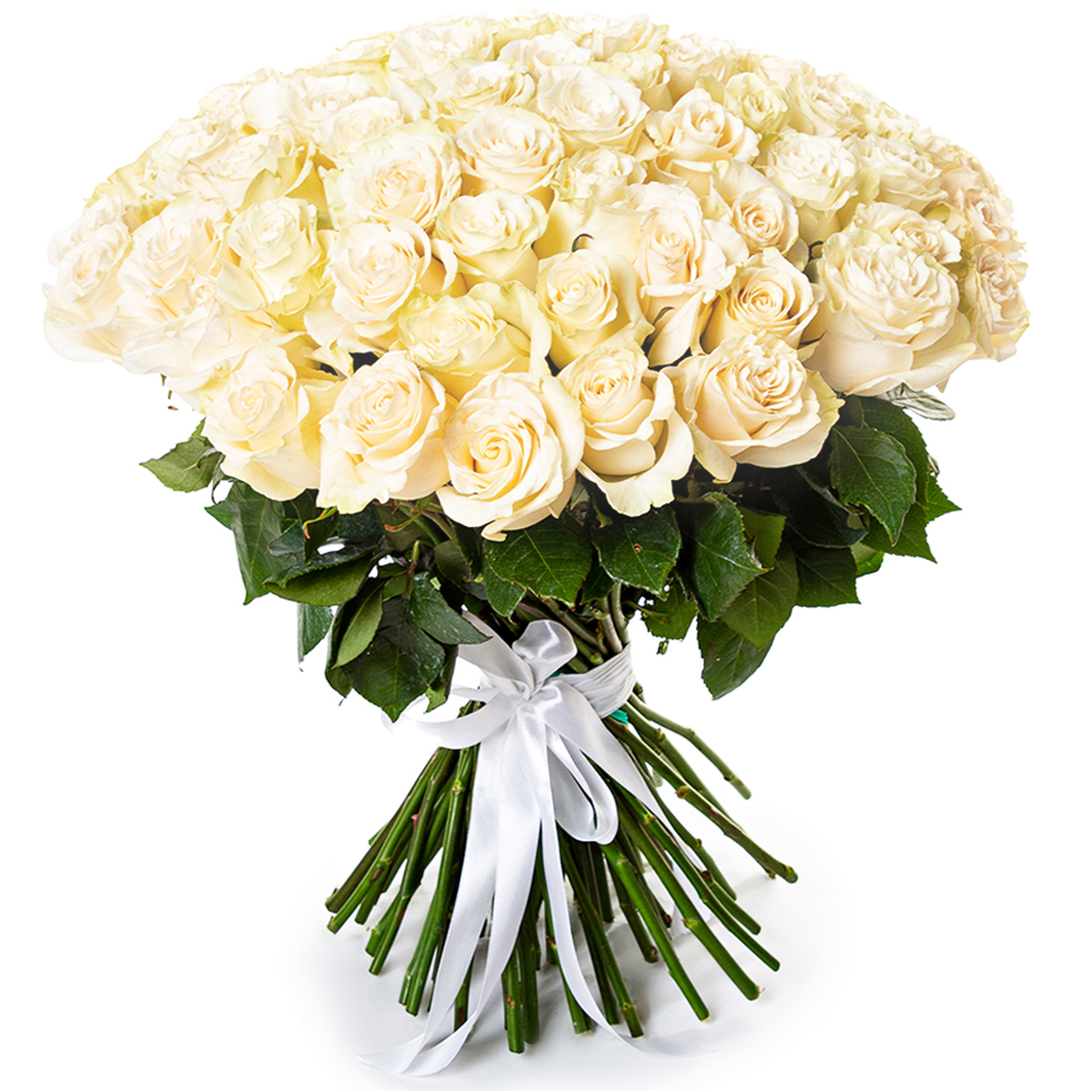 75 белых роз Эквадор 70 см