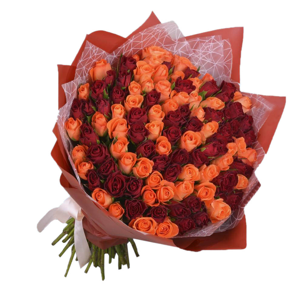 Букет из 101 красной и оранжевой розы