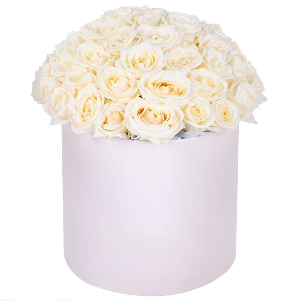 Букет из 51 белой розы premium в кремовой шляпной коробке