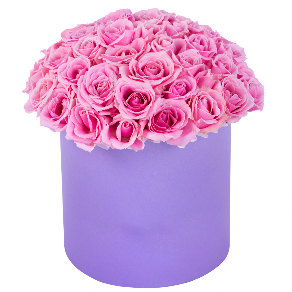 Букет из 51 розовой розы premium в фиолетовой шляпной коробке