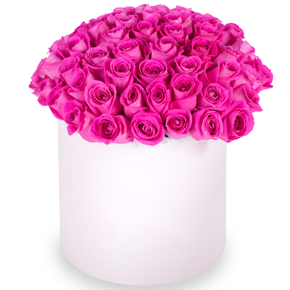 Букет из 75 розовых роз в кремовой шляпной коробке