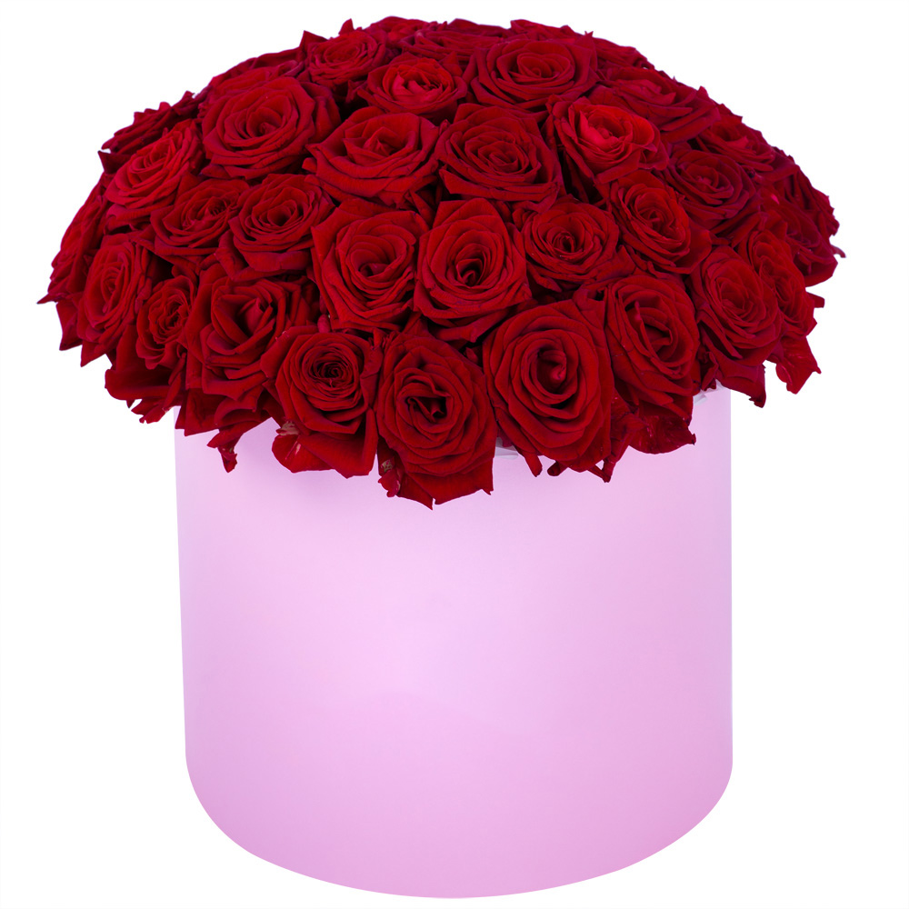 Букет из 51 красной розы premium в розовой шляпной коробке