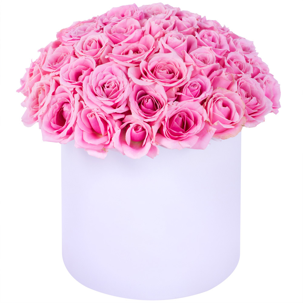 Букет из 51 розовой розы premium в белой шляпной коробке