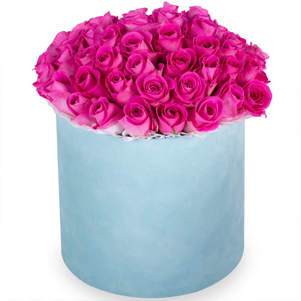 Букет из 51 розовой розы в зеленой бархатной шляпной коробке