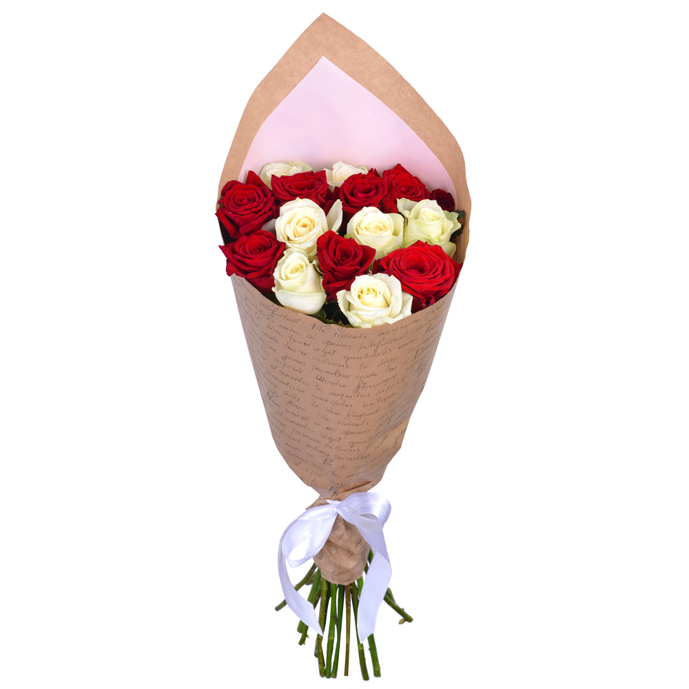 Букет из 15 красных и белых роз 60 см