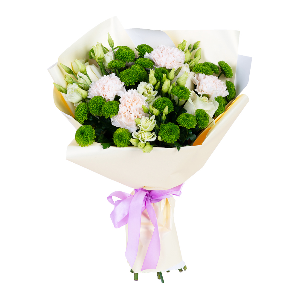 Букет из диантуса, роз и хризантем
