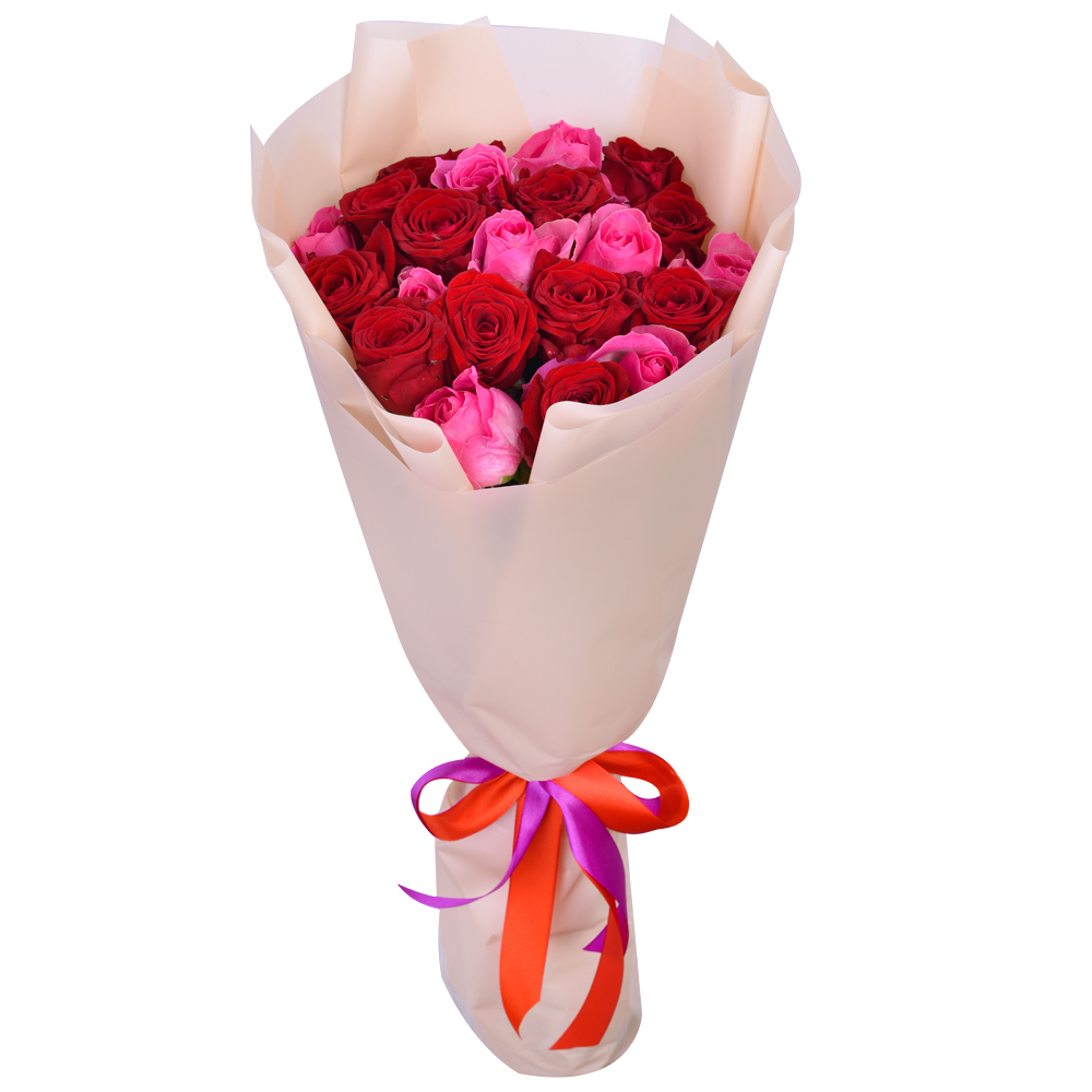 21 разноцветная роза Premium 50 см
