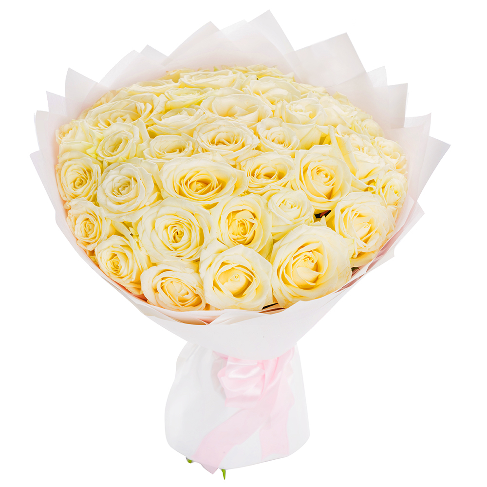 Букет из 51 белой розы в пленке 40 см