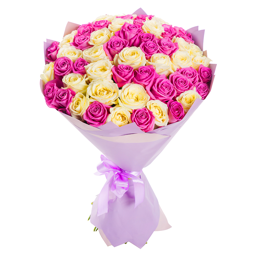 Букет из 51 розовой и белой розы 60 см