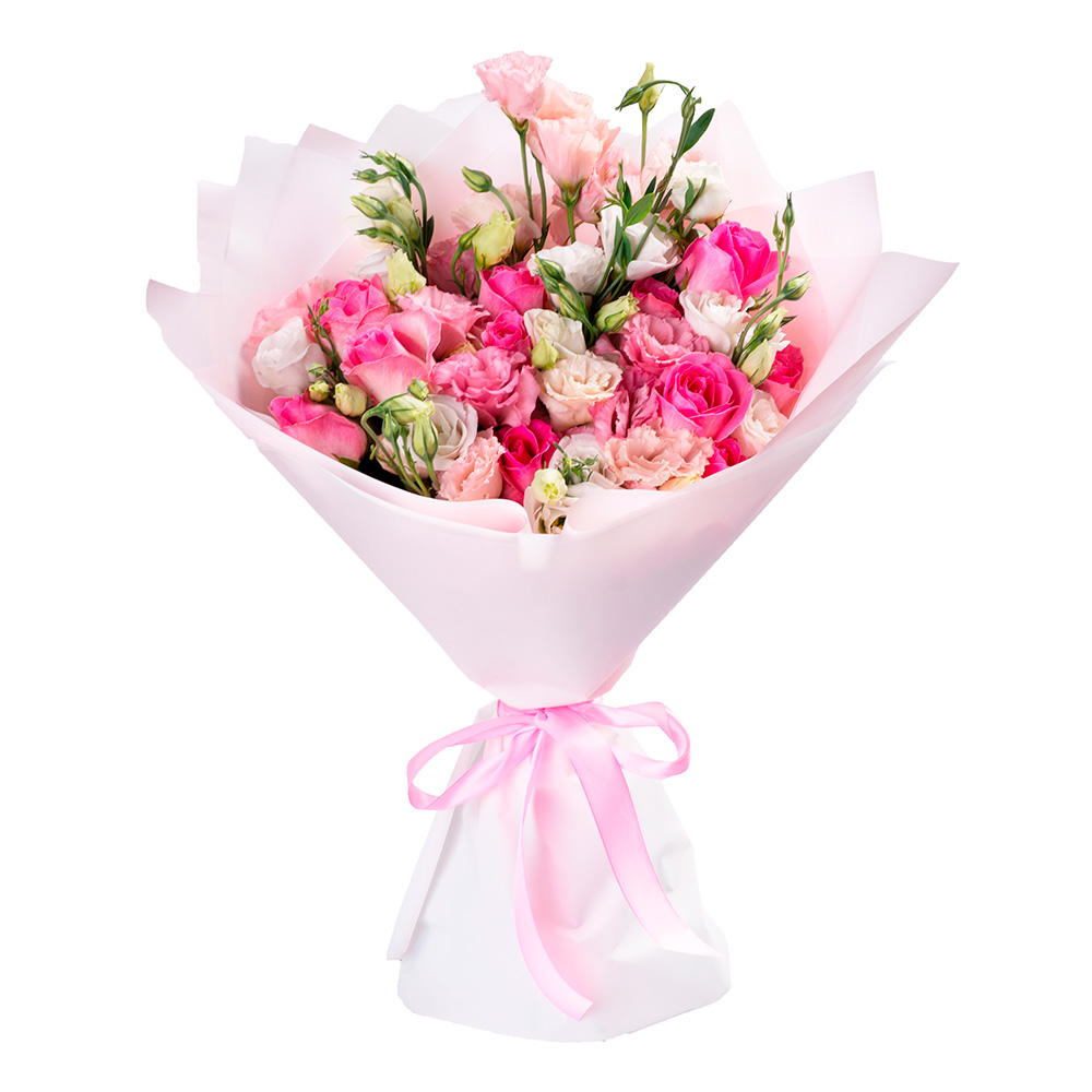 Букет из роз и лизиантуса