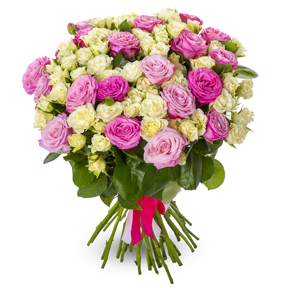 Букет из 51 разноцветной кустовой розы