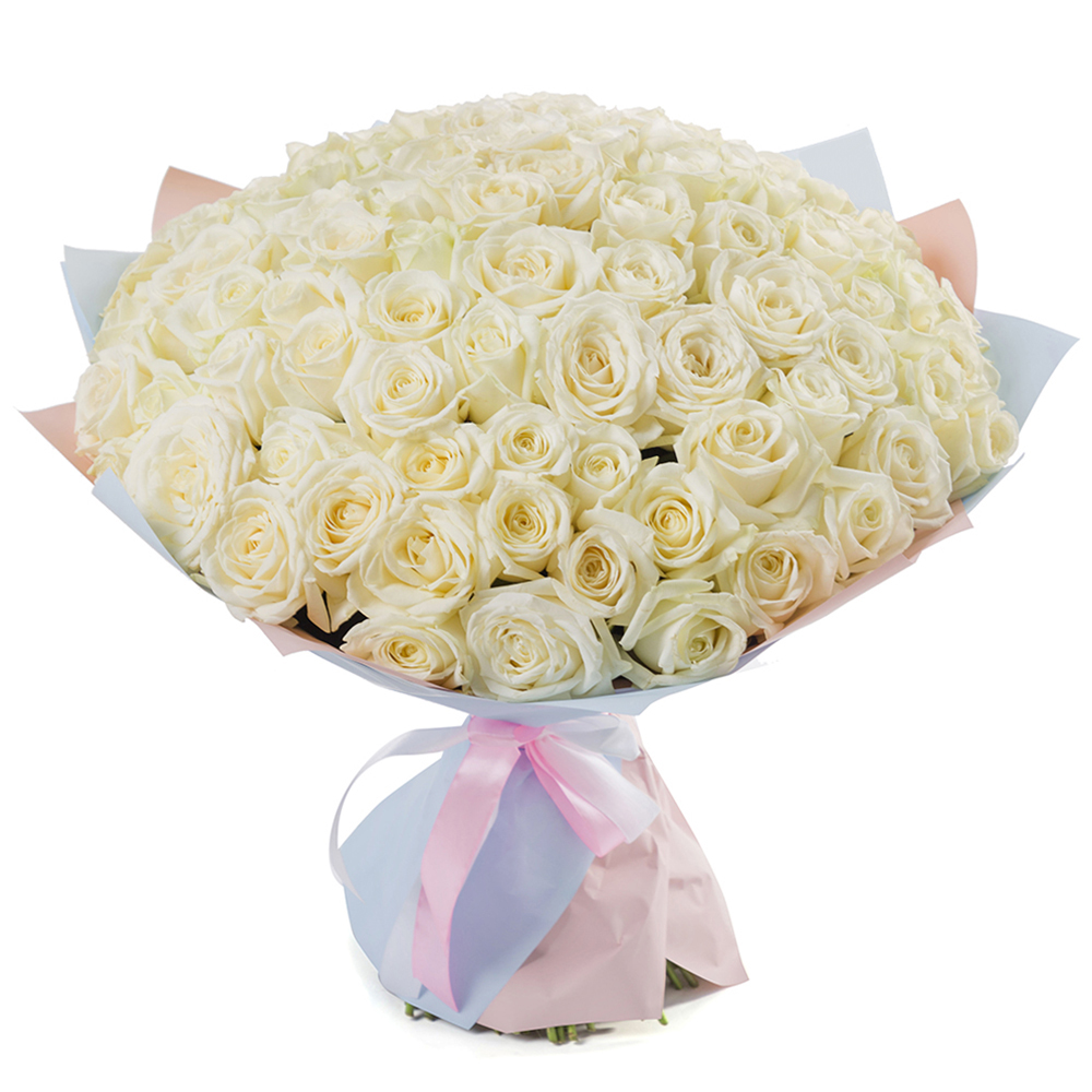 Букет из 101 белой розы 50 см