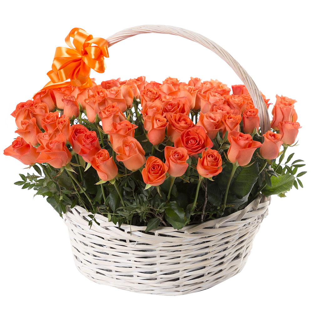 101 оранжевая роза в корзине