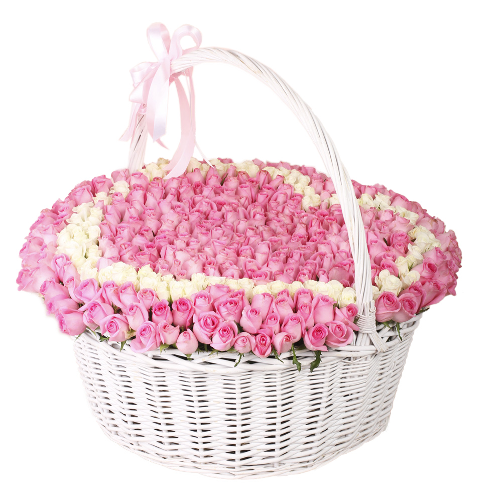 501 Розовая и белая роза в корзине