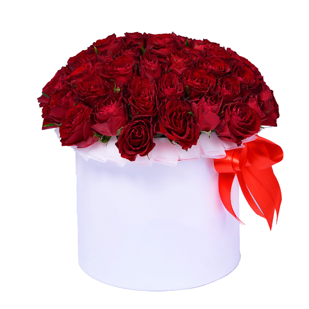 Букет из 51 красной розы в шляпной коробке