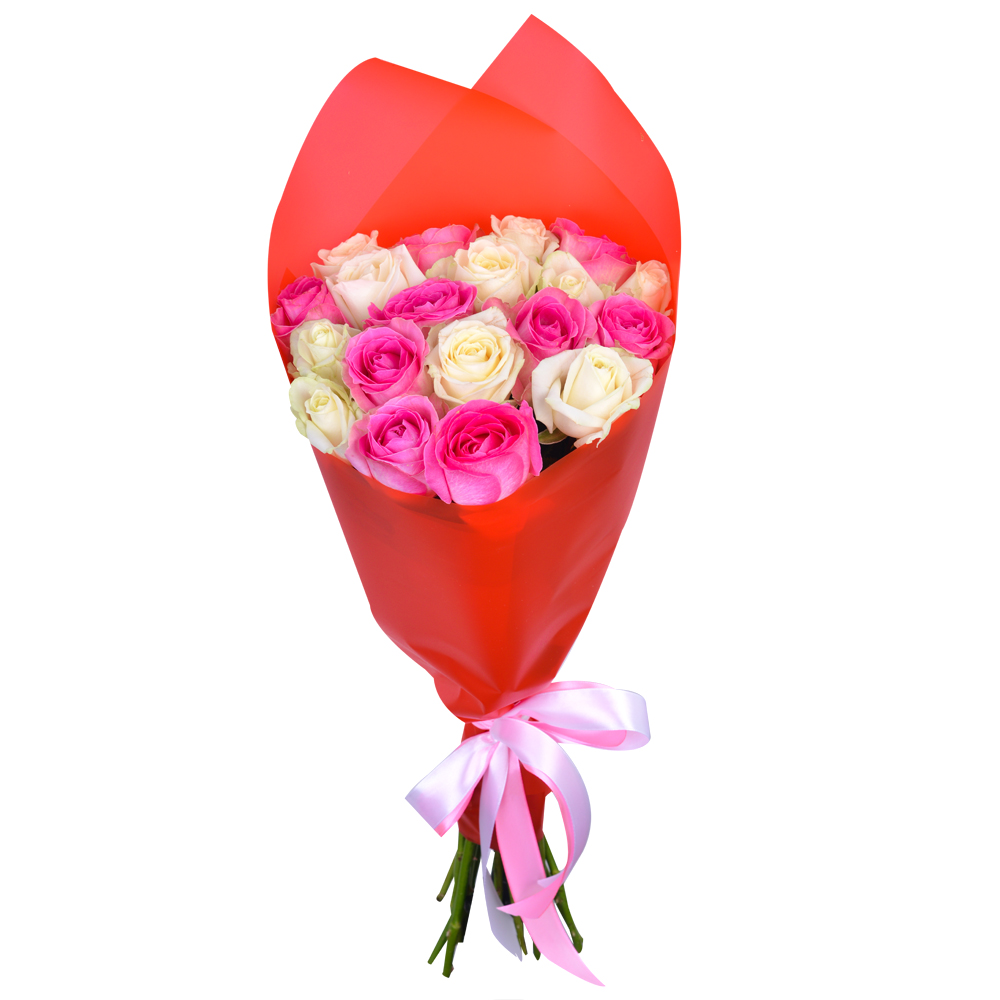 Букет из 19 разноцветных роз 50 см в пленке