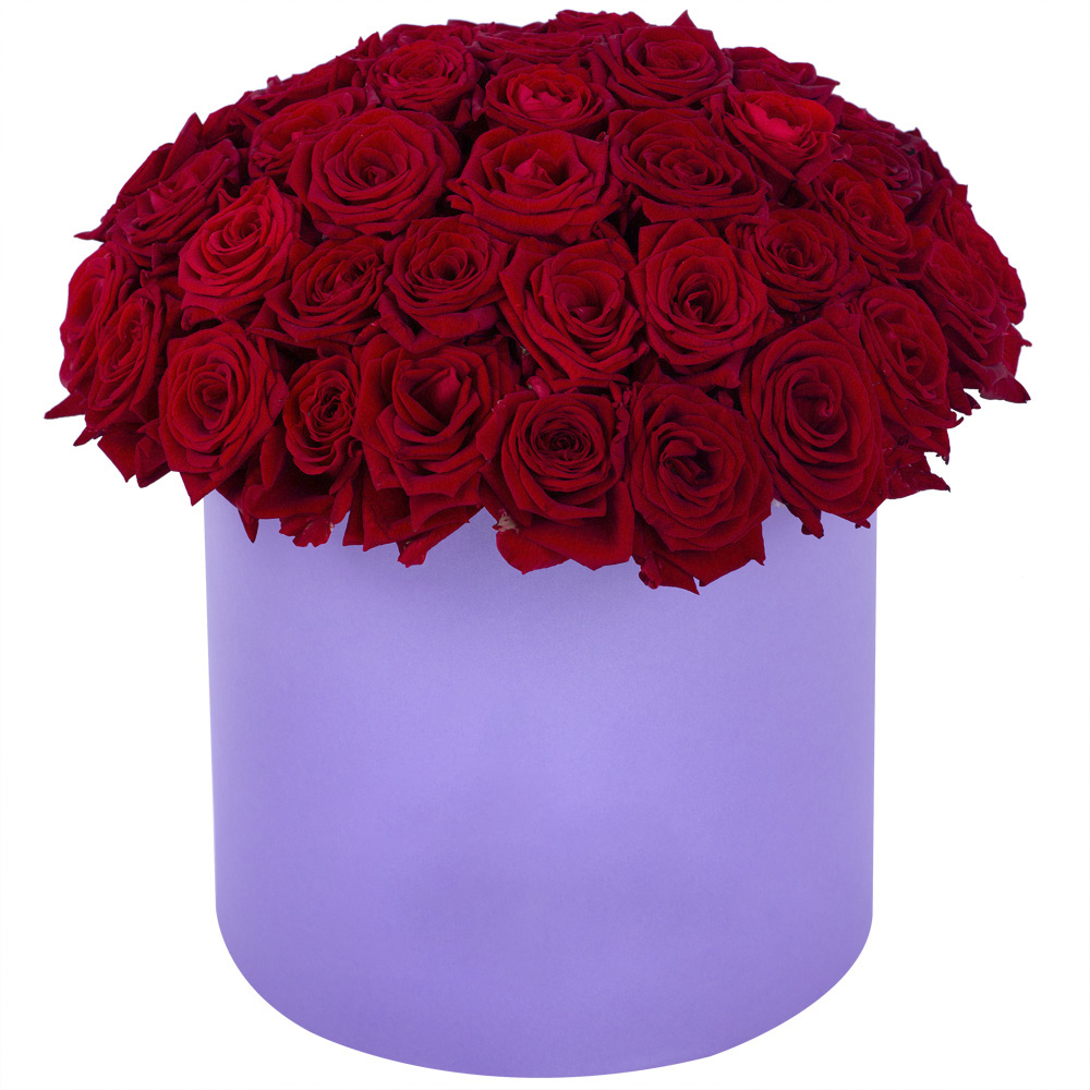 Букет из 51 красной розы premium в фиолетовой шляпной коробке